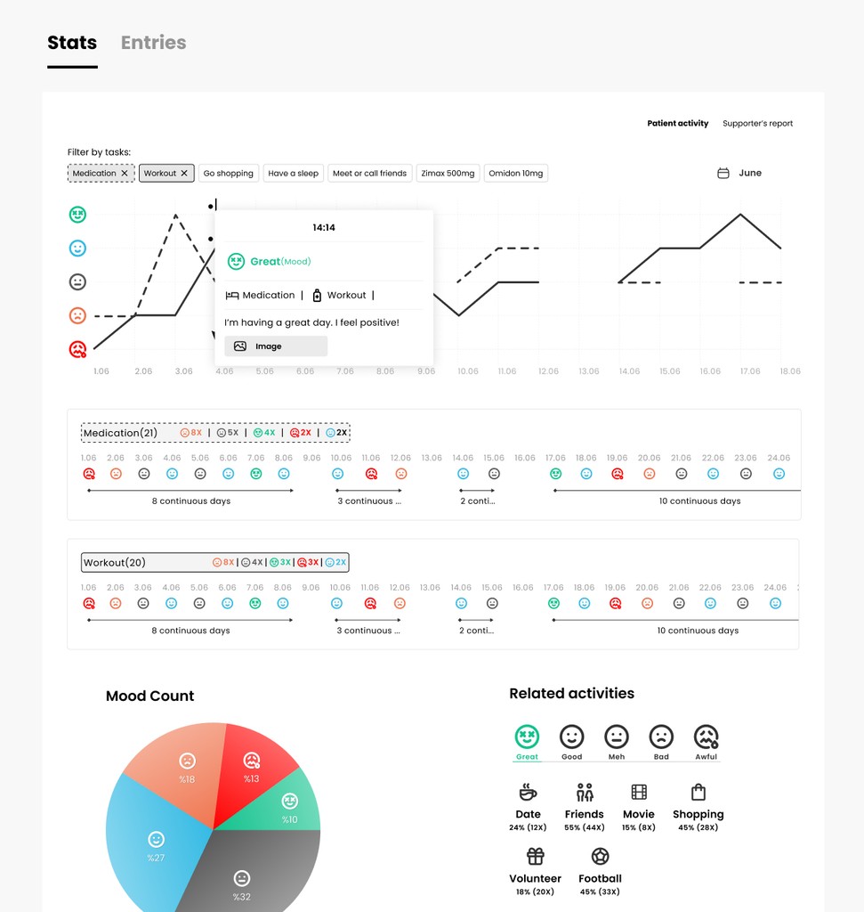 We used Lean UX method for product design. I focused on three stages: Learn, Prototype, and Test. We aimed to create a unique mental health app inspired by a real-life situation where a student's condition worsened despite changing doctors. The tool allows users to log activities, feelings, and observations to track changes. Research and interviews showed many face similar challenges, and Hamlet Health supports them with a tailored solution.